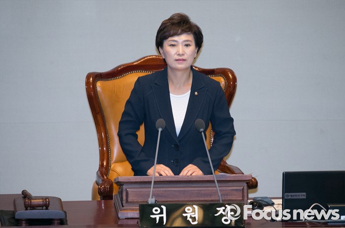 (서울=포커스뉴스) 6일 오전 서울 여의도 국회에서 열린 예산결산특별위원회 전체회의에 참석한 김현미 위원장이 인사말을 하고 있다.