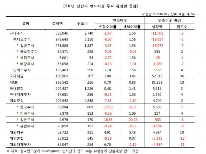 반면 국내 주식형펀드의 역성장세는 올 상반기에도 지속됐다.