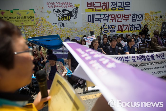 (서울=포커스뉴스) 6일 오후 서울 종로구 주한일본대사관 앞에서 일본군 '위안부' 문제 해결을 위한 제1238차 정기 수요집회가 열리고 있다.