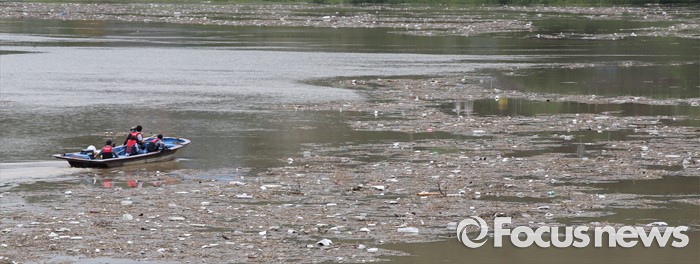 (옥천=포커스뉴스) 며칠간 이어진 중부지역 집중호우로 6일 오후 충북 옥천군 군복면 대청호 상류 일대에 쓰레기로 뒤덮혀 있다.