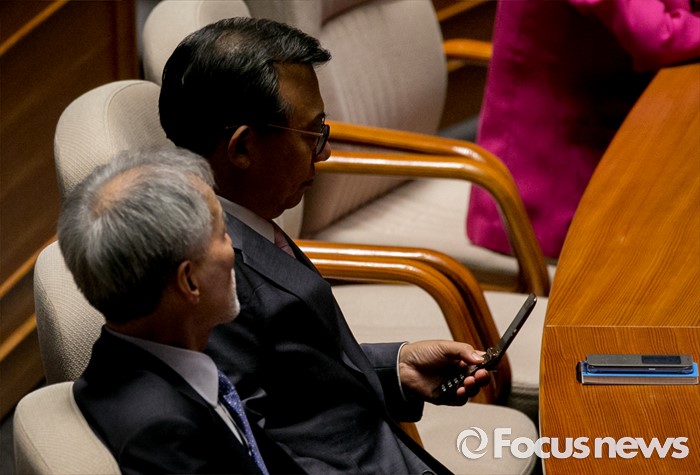 (서울=포커스뉴스) 6일 오후 서울 여의도 국회에서 열린 343회 국회(임시회) 8차 본회의에 참석한 이정현 새누리당 의원이 핸드폰을 바라보고 있다.