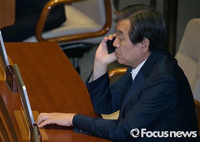 (서울=포커스뉴스) 6일 오후 서울 여의도 국회에서 열린 343회 국회(임시회) 8차 본회의에 참석한 김무성 새누리당 전 대표가 누군가와 통화를 하고 있다.