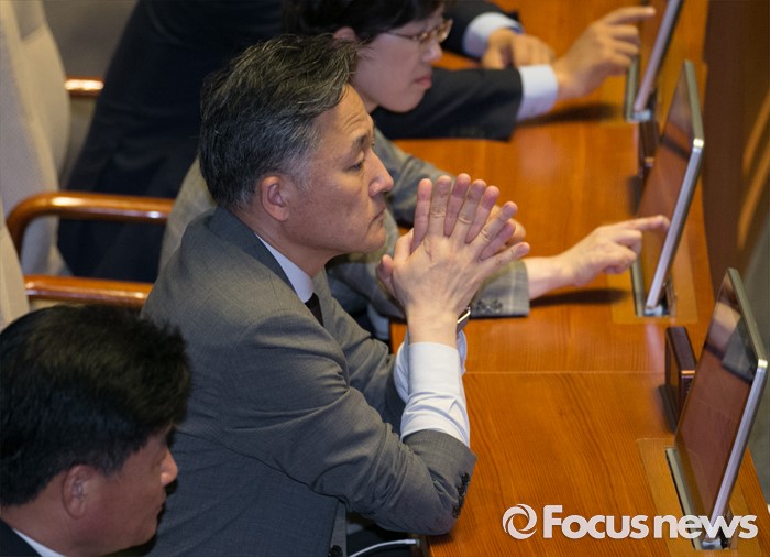 (서울=포커스뉴스) 6일 오후 서울 여의도 국회에서 열린 343회 국회(임시회) 8차 본회의에 참석한 표창원 더불어민주당 의원이 생각에 잠겨 있다.