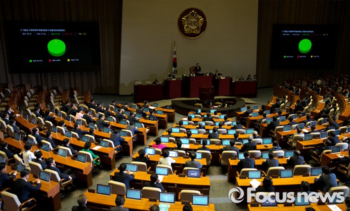 (서울=포커스뉴스) 6일 오후 서울 여의도 국회에서 열린 343회 국회(임시회) 8차 본회의에서 저출산·고령화대책 특별위원회 구성결의안이 재석 275인 중 찬성 273인, 기권 2인으로 통과되고 있다.