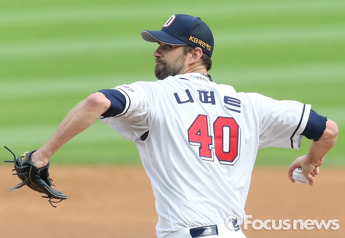 (서울=포커스뉴스) 6일 서울 잠실구장에서 열린 2016 프로야구 넥센-두산 경기에서 1회초 두산 선발투수 니퍼트가 투구하고 있다.