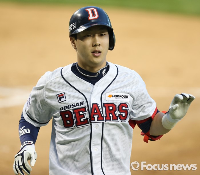 | △ 홈런치고 들어오는 두산 박건우 |