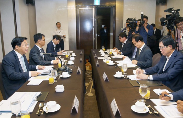 (서울=포커스뉴스) 주형환 산업통상자원부 장관이 6일 서울 팔래스호텔 다이너스티홀에서 채희봉산업부 에너지자원실장, 정창길 중부발전 사장, 조인국 서부발전 사장, 김용진 동서발전 사장, 허 엽 남동발전 사장, 윤종근 남부발전 사장과 산업부 관계자가 참석한 가운데 열린 석탄화력발전 대책회의를 주재하고 있다. <사진제공=산업통상자원부>