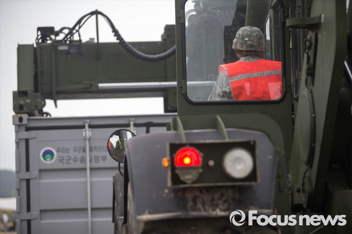 (태안=포커스뉴스) 7일 오전 충청남도 태안군 안면읍 인근 해안에서 2016 합동 해안양륙군수지원(J LOTS) 훈련이 열리고 있다. 합동참모본부 주관으로 해군과 해병대, 육군, 해경이 참가하는 합동 해안양륙군수지원 훈련은 항만 사용이 불가한 지역에서 작전을 수행중인 전투부대에 군수지운을 하기 위한 작전이다.