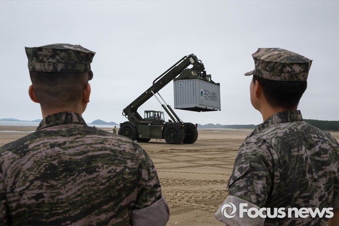 (태안=포커스뉴스) 7일 오전 충청남도 태안군 안면읍 인근 해안에서 2016 합동 해안양륙군수지원(J LOTS) 훈련이 열리고 있다. 합동참모본부 주관으로 해군과 해병대, 육군, 해경이 참가하는 합동 해안양륙군수지원 훈련은 항만 사용이 불가한 지역에서 작전을 수행중인 전투부대에 군수지운을 하기 위한 작전이다.