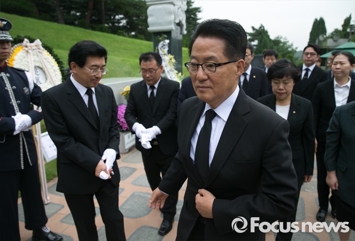 (서울=포커스뉴스) 박지원 국민의당 비상대책위원장과 비대위원 등이 7일 오전 동작구 국립서울현충원을 방문해 故 김대중 전 대통령 묘소 참배를 마친 뒤 나서고 있다.