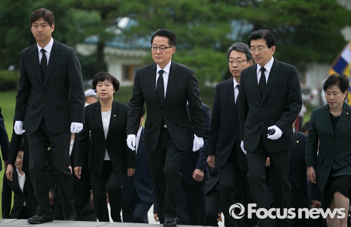 (서울=포커스뉴스) 박지원 국민의당 비상대책위원장과 비대위원 등이 7일 오전 동작구 국립서울현충원을 방문해 현충탑 참배를 위해 이동하고 있다.