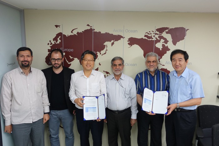 코트라는 전자정부 및 전자신분증 기술력을 갖춘 국내 기업의 베트남, 방글라데시 등 동남아 지역 진출을 도울 계획이다.왼쪽 세번째부터 김동영 SME 네트웍스 대표이사, 모하메드 호자티 이란 내무부 산하기관 마티란 이사장, 하미드 쇼아비 마티란 사장 등이 계약 체결 후 기념 촬영을 하고 있다.