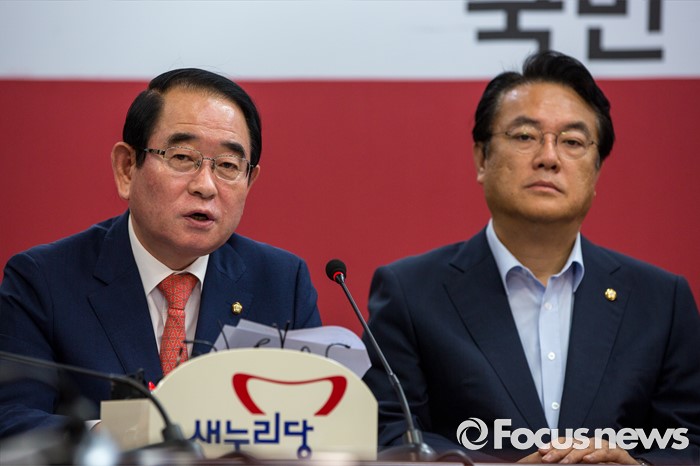(서울=포커스뉴스) 박명재 새누리당 사무총장이 7일 오전 서울 여의도 새누리당사에서 열린 혁신비상대책위원회의에 참석해 모두발언 하고 있다.