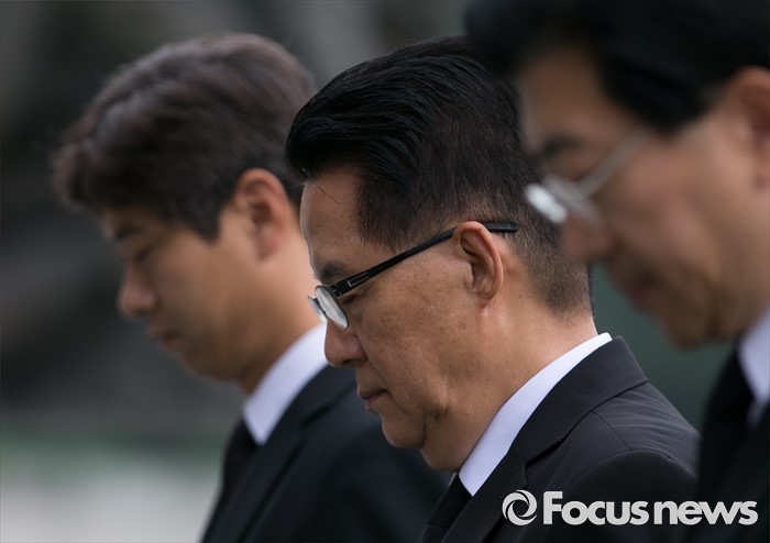 (서울=포커스뉴스) 박지원 국민의당 비상대책위원장과 비대위원 등이 7일 오전 동작구 국립서울현충원을 방문해 현충탑 참배를 하고 있다.