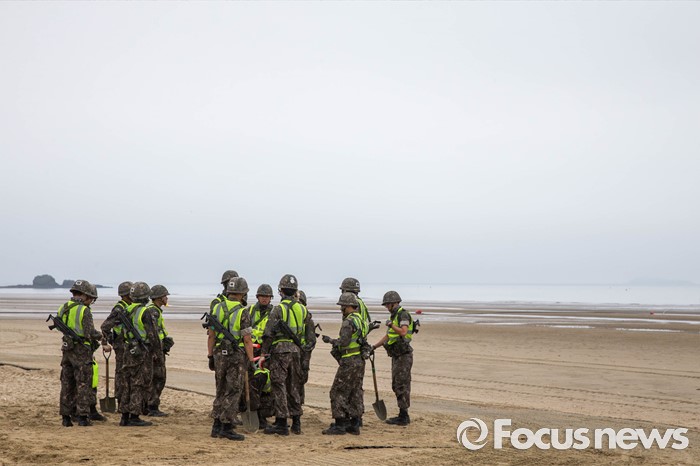 (태안=포커스뉴스) 7일 오전 충청남도 태안군 안면읍 인근 해안에서 2016 합동 해안양륙군수지원(J LOTS) 훈련이 열리고 있다. 합동참모본부 주관으로 해군과 해병대, 육군, 해경이 참가하는 합동 해안양륙군수지원 훈련은 항만 사용이 불가한 지역에서 작전을 수행중인 전투부대에 군수지운을 하기 위한 작전이다.