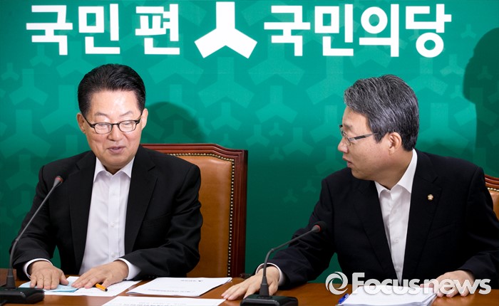 (서울=포커스뉴스) 7일 오전 서울 여의도 국회에서 열린 국민의당 첫 비상대책위원회의에 참석한 박지원(왼쪽) 비대위원장과 김성식 정책위의장이 대화하고 있다.