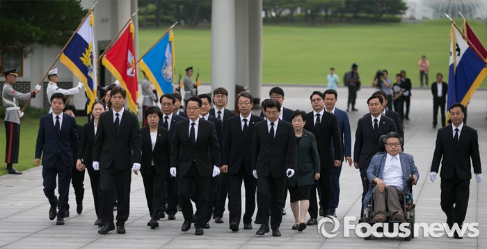 (서울=포커스뉴스) 박지원 국민의당 비상대책위원장과 비대위원 등이 7일 오전 동작구 국립서울현충원을 방문해 현충탑 참배를 위해 이동하고 있다.