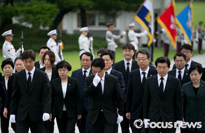 (서울=포커스뉴스) 박지원 국민의당 비상대책위원장과 비대위원 등이 7일 오전 동작구 국립서울현충원을 방문해 현충탑 참배를 위해 이동하고 있다.