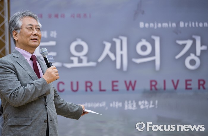 (서울=포커스뉴스) 7일 오후 서울 종로구 세종문화회관에서 열린 오페라 '도요새의 강' 제작발표회에 참석한 이건용 서울시오페라단장이 작품에 대한 설명을 하고 있다.
