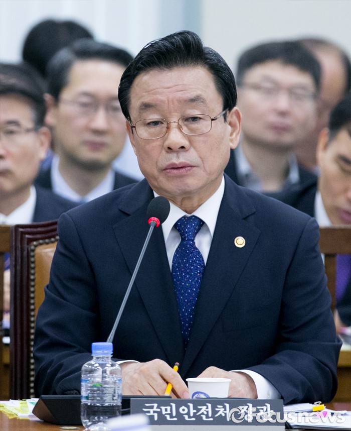 (서울=포커스뉴스) 7일 오전 서울 여의도 국회에서 열린 안전행정위원회 전체회의에 참석한 박인용(오른쪽) 국민안전처 장관이 의원들의 질의에 답하고 있다.