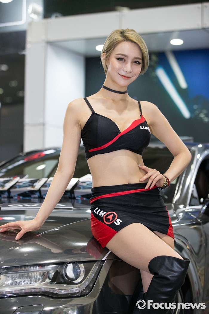 (서울=포커스뉴스) 7일 오전 서울 강남구 코엑스에서 열린 제14회 서울오토살롱에서 레이싱모델이 튜닝차량을 선보이고 있다.