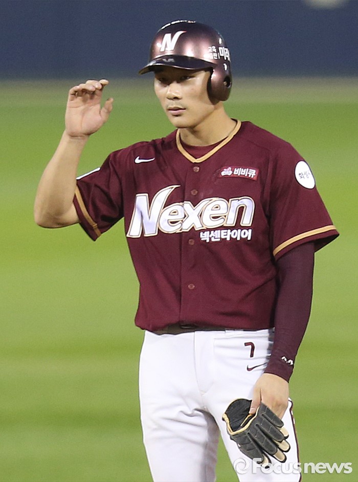 (서울=포커스뉴스) 6일 서울 잠실구장에서 열린 2016 프로야구 넥센-두산 경기 6회초 무사 2루에서 넥센 김하성이 좌익선상으로 빠지는 득점타를 치고 2루에서 주루 코치의 사인을 보고 있다.