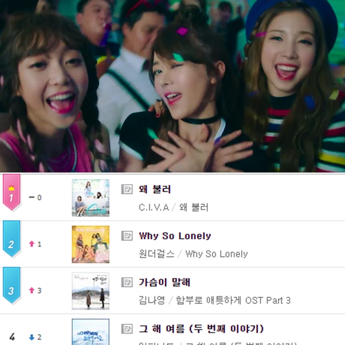 ‘음악의신 2’를 통해 탄생된 프로젝트 걸그룹 CIVA의 데뷔곡 ‘왜 불러’가 엠넷차트에서 1위에 올랐다.