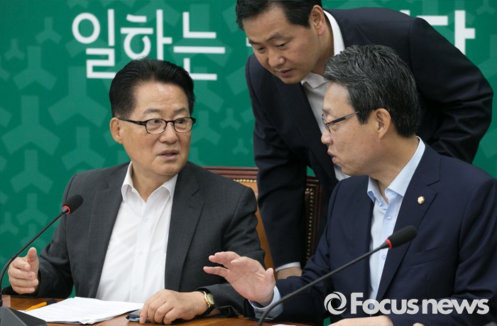(서울=포커스뉴스) 8일 오전 서울 여의도 국회에서 열린 국민의당 원내대책회의에 참석한 박지원(왼쪽부터) 비대위원장, 김관영 원내수석부대표, 김성식 정책위의장이 대화하고 있다.