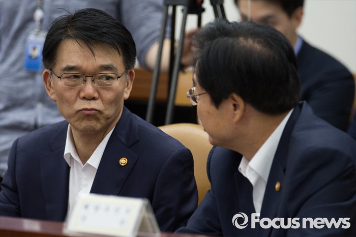 (서울=포커스뉴스) 강호인(왼쪽) 국토교통부 장관과 김영석 해양수산부 장관이 8일 오전 서울 종로구 정부서울청사에서 열린 제182차 대외경제장관회의에 자리해 대화하고 있다.