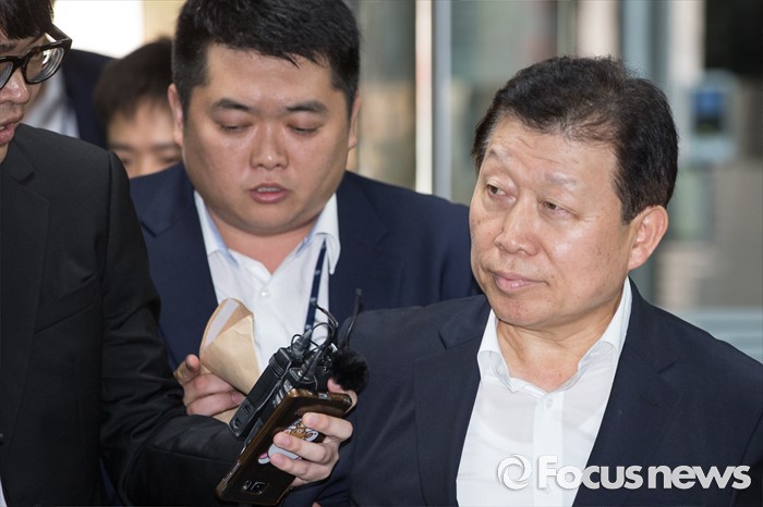 (서울=포커스뉴스) 5조 4천억 원대 회계사기로 대우조선해양 비리 의혹 핵심 인물로 지목된 고재호 전 사장이 8일 오전 서울 서초구 서울중앙지방법원으로 영장실질심사를 받기 위해 들어서고 있다.