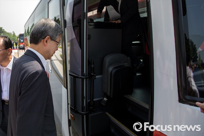 | △ 청와대행 버스 탐승하는 김희옥 위원장 |
