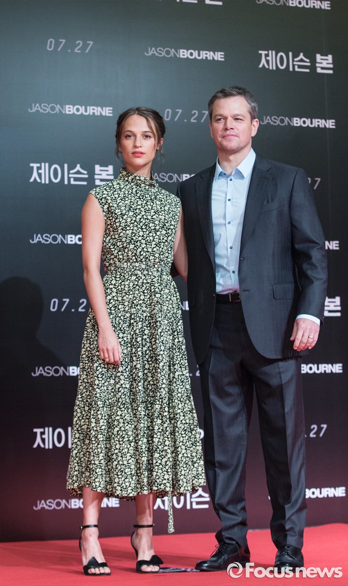 (서울=포커스뉴스) 8일 오전 서울 종로구 포시즌스호텔 서울에서 열린 영화 '제이슨 본' 아시아 프리미어 기자간담회에 참석한 배우 알리시아 비칸데르(왼쪽)와 맷 데이먼이 포토타임을 갖고 있다.