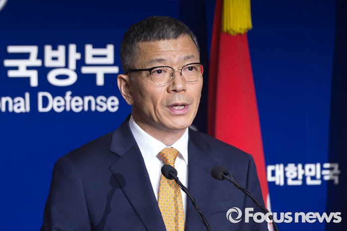 (서울=포커스뉴스) 8일 오전 서울 용산구 국방부 브리핑실에서 류제승 국방부 국방정책실장이 주한미군 사드(THAAD) 배치 결정과 주한민국의 사드 배치 가능성에 대한 공식협의 개시를 발표하고 있다.