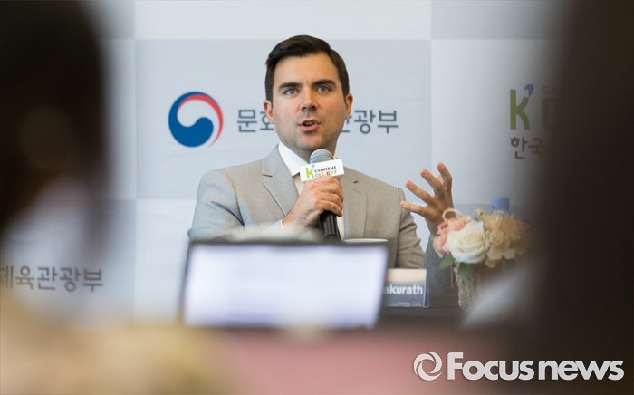 (서울=포커스뉴스) 영화사 불릿의 토드 마커리스(Todd Makurath) 대표가 8일 오전 서울 마포구 누리꿈스퀘어에서 열린 제2차 콘텐츠 인사이트 기자간담회에 참석해 취재진 질문에 답변하고 있다.