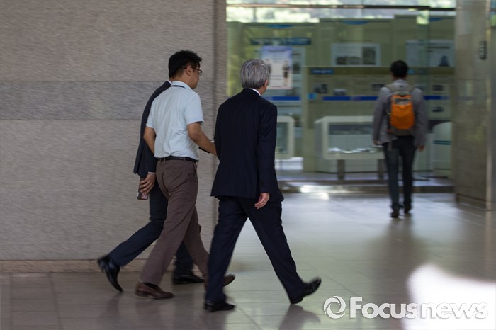 (서울=포커스뉴스) 박동훈(현 르노삼성차 사장) 전 아우디폭스바겐코리아(AFK) 사장(가운데)이 8일 오후 서울 서초구 서울중앙지방검찰청으로 출석하고 있다.