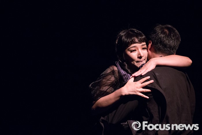 (서울=포커스뉴스) 8일 오후 서울 종로구 동숭아트센터에서 열린 오페라연극 '맥베스' 프레스콜에 참여한 배우 서지유(왼쪽)와 김재만이 주요장면을 시연하고 있다.