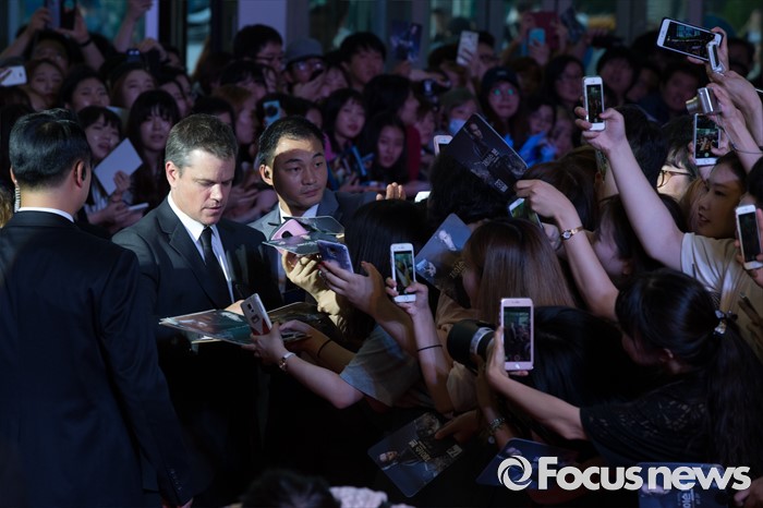 (서울=포커스뉴스) 8일 오후 서울 영등포구 타임스퀘어에서 열린 영화 '제이슨 본' 레드카펫 행사에 참석한 배우 맷 데이먼이 팬들에게 사인을 하고 있다.