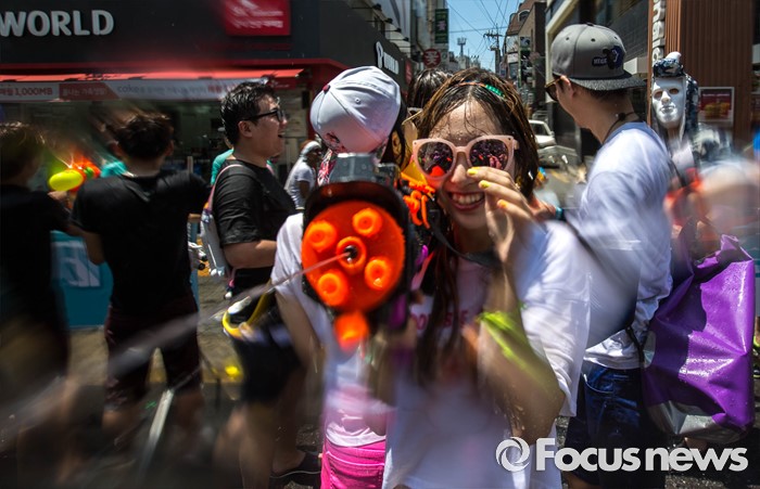 (서울=포커스뉴스) 9일 오후 서울 서대문구 신촌 연세로에서 열린 '2016 물총축제' 에 참가한 시민들이 서로 물총을 쏘며 즐거운 시간을 보내고 있다.