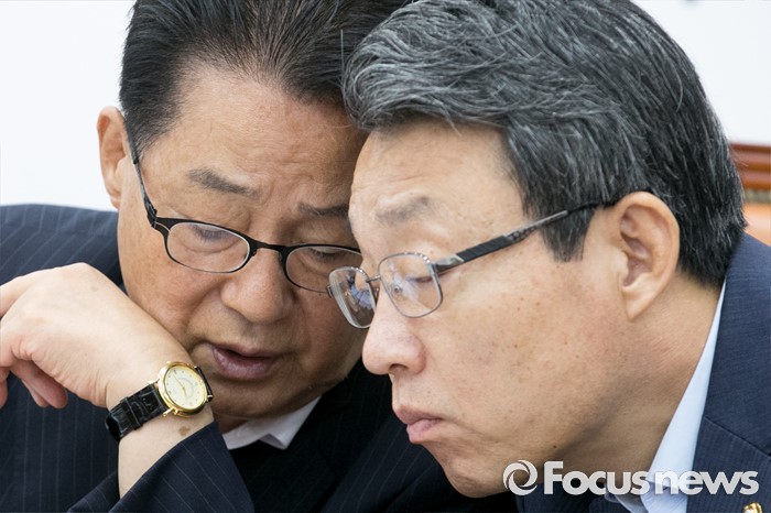 (서울=포커스뉴스) 11일 오전 서울 여의도 국회에서 열린 국민의당 비상대책위원회의에 참석한 박지원(왼쪽) 비대위원장과 김성식 정책위의장이 대화하고 있다.