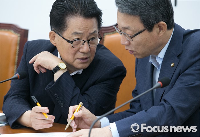 (서울=포커스뉴스) 11일 오전 서울 여의도 국회에서 열린 국민의당 비상대책위원회의에 참석한 박지원(왼쪽) 비대위원장과 김성식 정책위의장이 대화하고 있다.