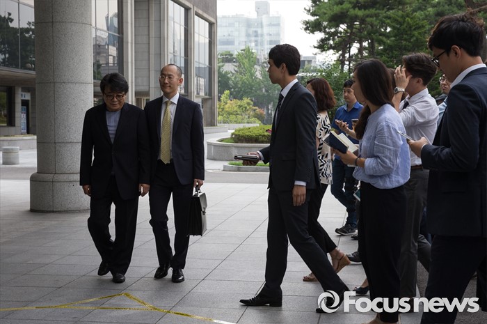 (서울=포커스뉴스) '대우조선 비자금 조성' 의혹을 받고 있는 남상태 전 사장의 최측근 유명 건축가 이창하(왼쪽)가 11일 오전 서울 서초구 서울중앙지방검찰청으로 들어서고 있다.