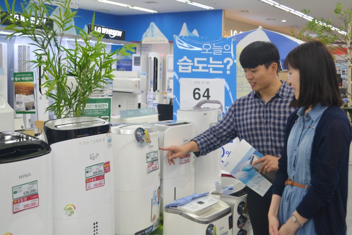 특히 상대적으로 비가 많이 온 경남, 경북 등 남부 지역 매장들의 제습기 판매 실적이 좋았다. 이들 지역의 지난 1~9일 판매량은 전체 판매대수의 46%를 차지했으며, 수도권 지역 매장보다 5.4배 더 많았다.