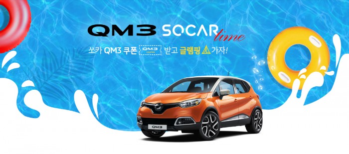 (서울=포커스뉴스) 르노삼성자동차가 카셰어링 서비스 업체 쏘카와 함께 QM3 무료 드라이브 쿠폰과 럭셔리 글램핑 기회를 제공하는 ‘QM3 체험 이벤트’를 진행한다.