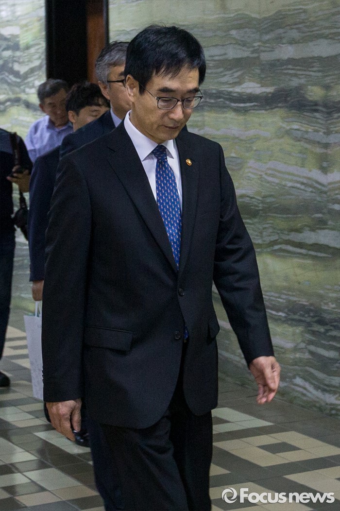 (서울=포커스뉴스) 이준식 교육부 장관이 11일 오전 서울 여의도 국회에서 열린 교육문화체육관광위원회 전체회의에 참석해 '개돼지 발언 논란'을 일으킨 나향욱 교육부 정책기획관 출석 요구 공방으로 회의가 정회되자 회의실을 나서고 있다.