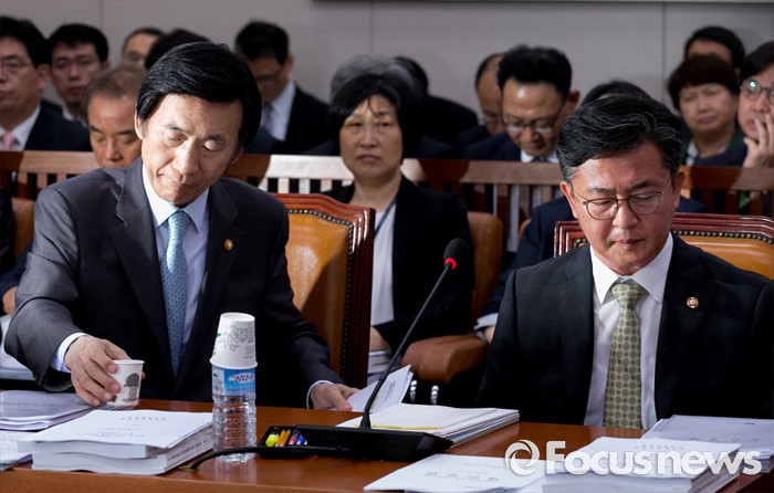 (서울=포커스뉴스) 11일 오전 서울 여의도 국회에서 열린 외교통일위원회 전체회의에 참석한 윤병세 외교부 장관이 제안설명을 준비하고 있다. 오른쪽은 홍용표 통일부 장관.