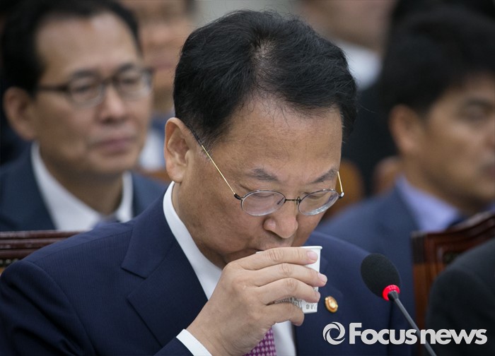 (서울=포커스뉴스) 11일 오전 서울 여의도 국회에서 열린 기획재정위원회 전체회의에 참석한 유일호 경제부총리 겸 기획재정부 장관이 물을 마시고 있다.