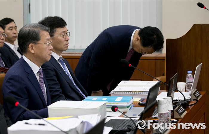 (서울=포커스뉴스) 11일 오전 서울 여의도 국회에서 열린 기획재정위원회 전체회의에 참석한 유일호(오른쪽) 경제부총리 겸 기획재정부 장관이 제안설명에 앞서 인사하고 있다.