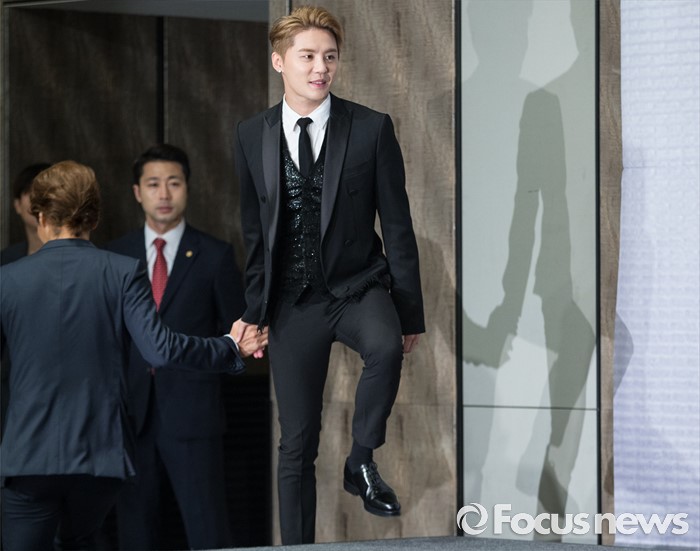 (서울=포커스뉴스) 11일 오후 서울 종로구 포시즌스호텔 서울에서 열린 뮤지컬 '도리안 그레이' 제작발표회에 참석한 배우 김준수가 포토타임을 위해 이동하고 있다.