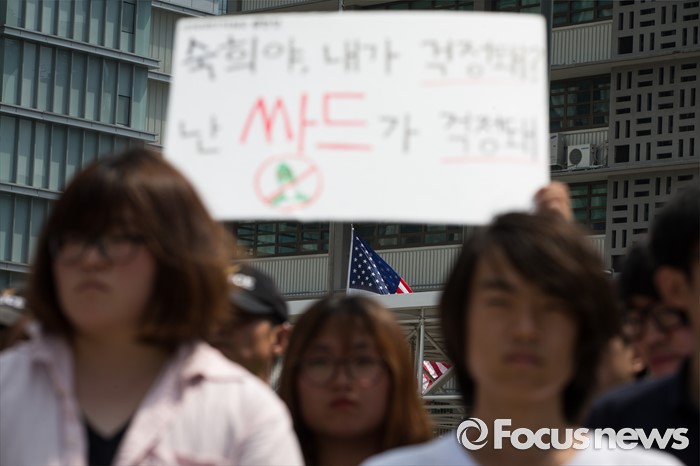 | △ 미대사관 앞에서 사드 배치 반대하는 대학생들 |