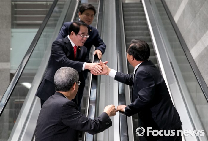 | △ 에스컬레이터에서 만난 與 지도부와 이정현 |